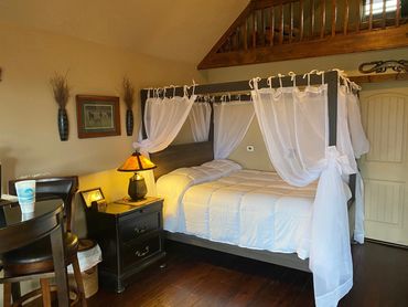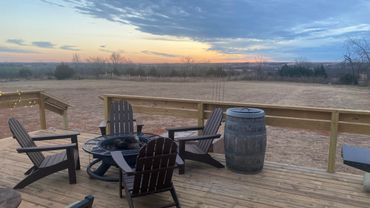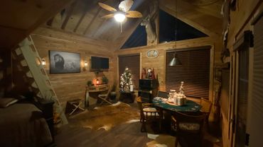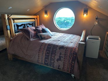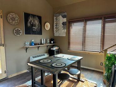 African Hut #3 is now accepting bookings—call 405-414-9365 to reserve your stay in this beautiful log-cabin-style hut. Enjoy an upstairs loft, a fully equipped kitchen, a separate bedroom, and a jacuzzi tub, plus your very own private fire pit on the porch!