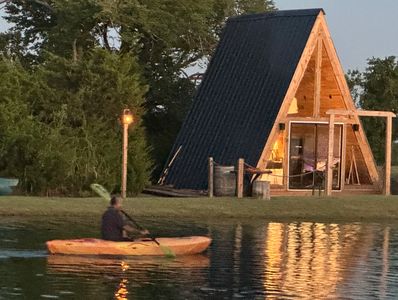 Perched above shimmering waters, this cozy A-frame retreat offers breathtaking views and soothing natural sounds. Wake up to authentic African décor and modern amenities: