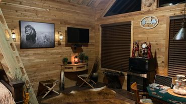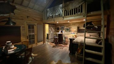 Sabi Sabi Lodge is designed to accommodate both small and large families with ease. The lodge features two well-appointed bedrooms: one with a queen bed and another with two full beds. Additionally, an upstairs loft with multiple beds, including air mattresses, allows for a total of seven beds. This setup can comfortably sleep up to 14 guests, making it perfect for a family of six or an extended family of ten or more. The spacious interiors and luxurious amenities ensure every guest enjoys a comfortable and memorable stay.