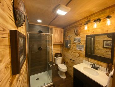 After a day of exploring, unwind in the 6-person hot tub, soaking in the stunning views of the surrounding landscape. The hot tub provides the perfect place to relax and rejuvenate, ensuring you’re ready for the next day’s adventures.